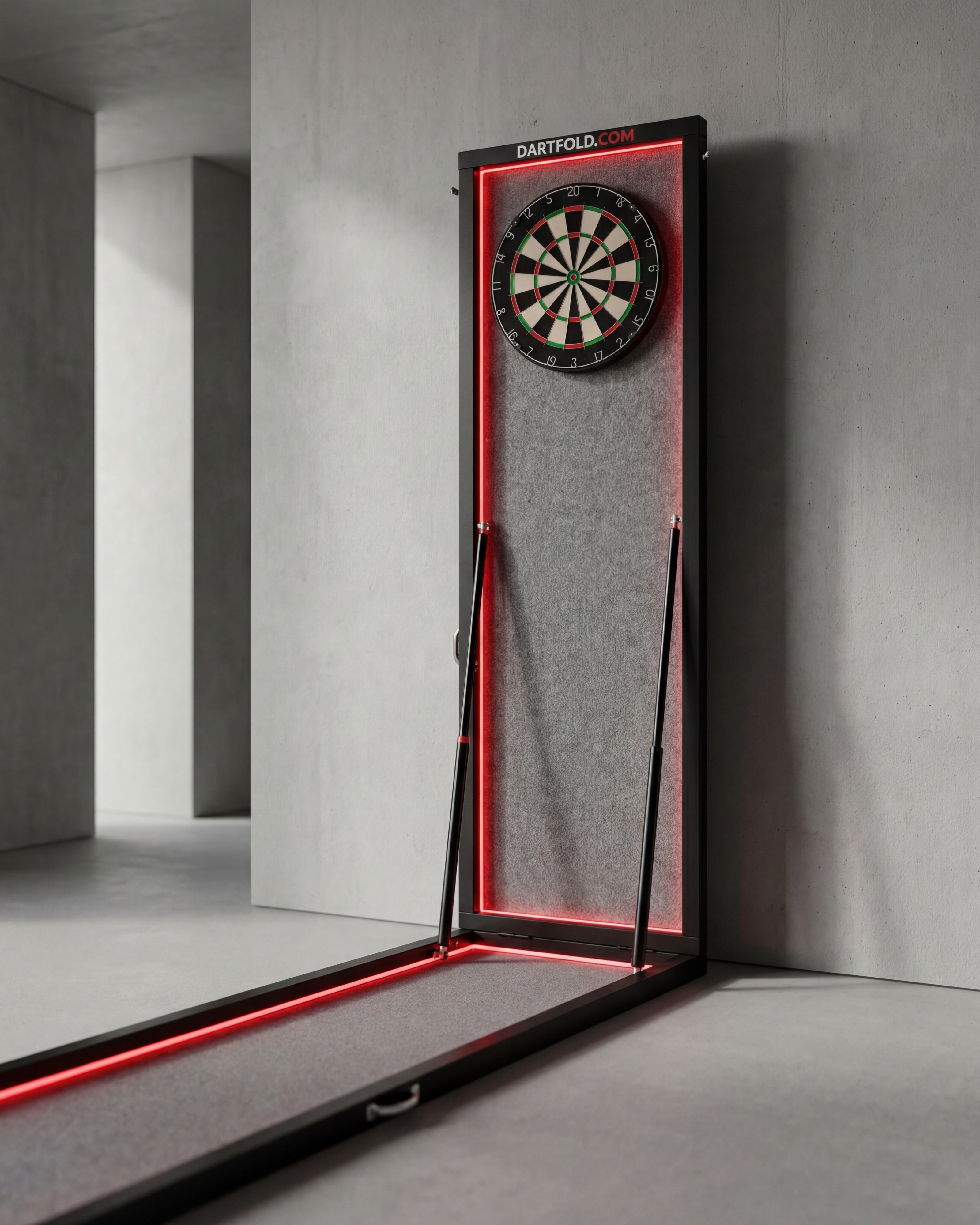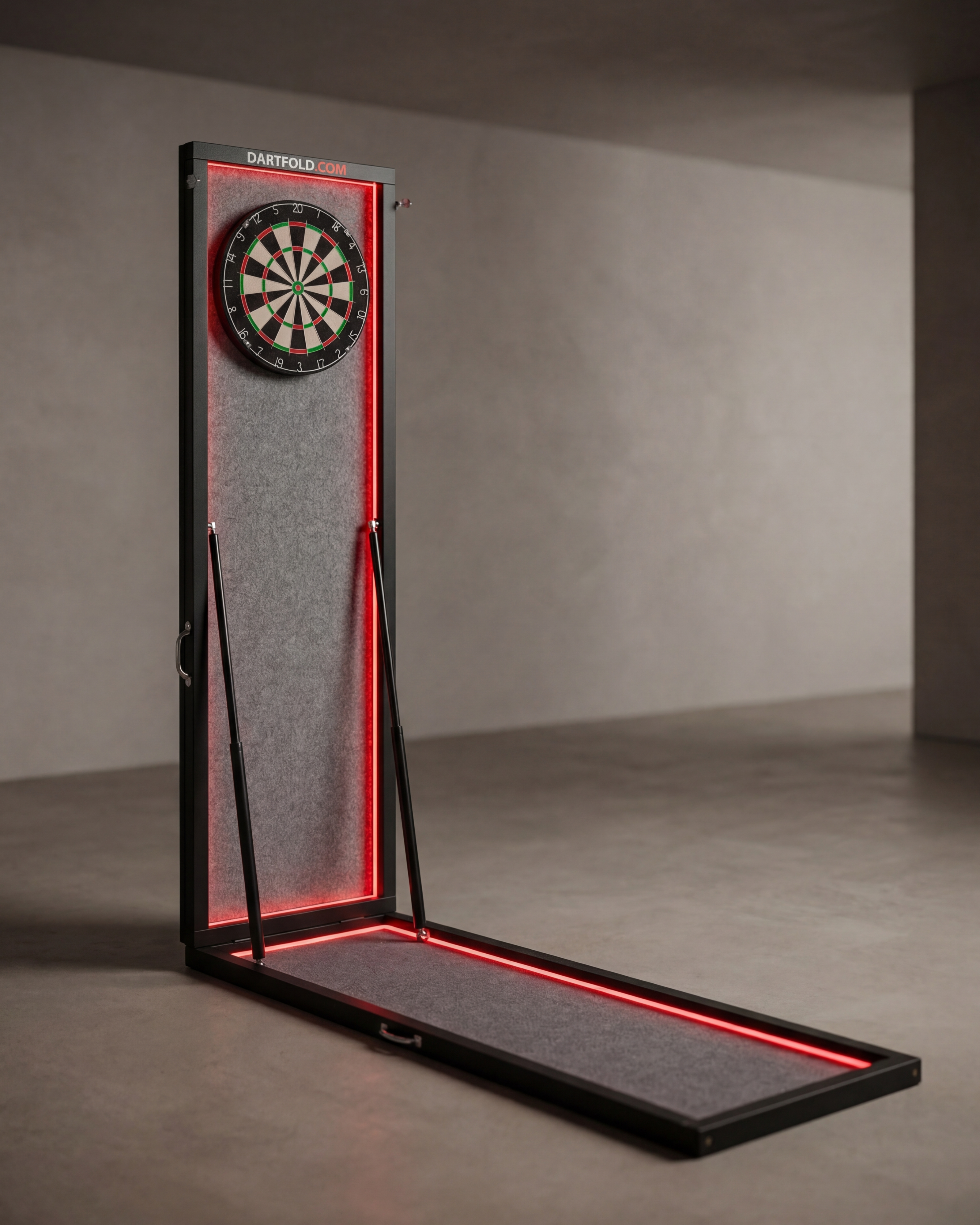 Hallo, wij zijn Dartfold. Twee broers met een simpele wens: altijd en overal kunnen darten zonder gedoe. We liepen tegen een paar dingen aan: Geen vaste plek in huis (of het mocht niet 😉) In de winter was het ijskoud in de garage. En gaten in de muur van ophanging of mis gegooide pijlen? Liever niet. Daarom bedachten we Dartfold: Een stijlvolle, opvouwbare dartbaan die je in seconden opzet, mét officiële werpafstand en zonder blijvende rommel in huis. Zo wordt elke plek je nieuwe dartspot.